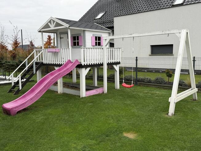 Na sprzedaż oferuję duży, solidny, drewniany plac zabaw z domkiem – idealny dla dzieci, które uwielbiają spędzać ...